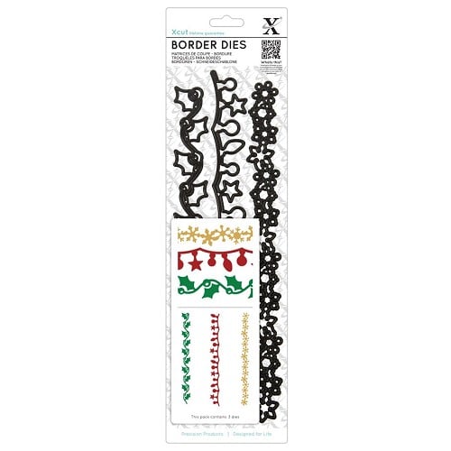 The Christmas Border Die Set by Xcut contain three dies and one magnetic sheet. Borders are 11" to 11.5" long.
