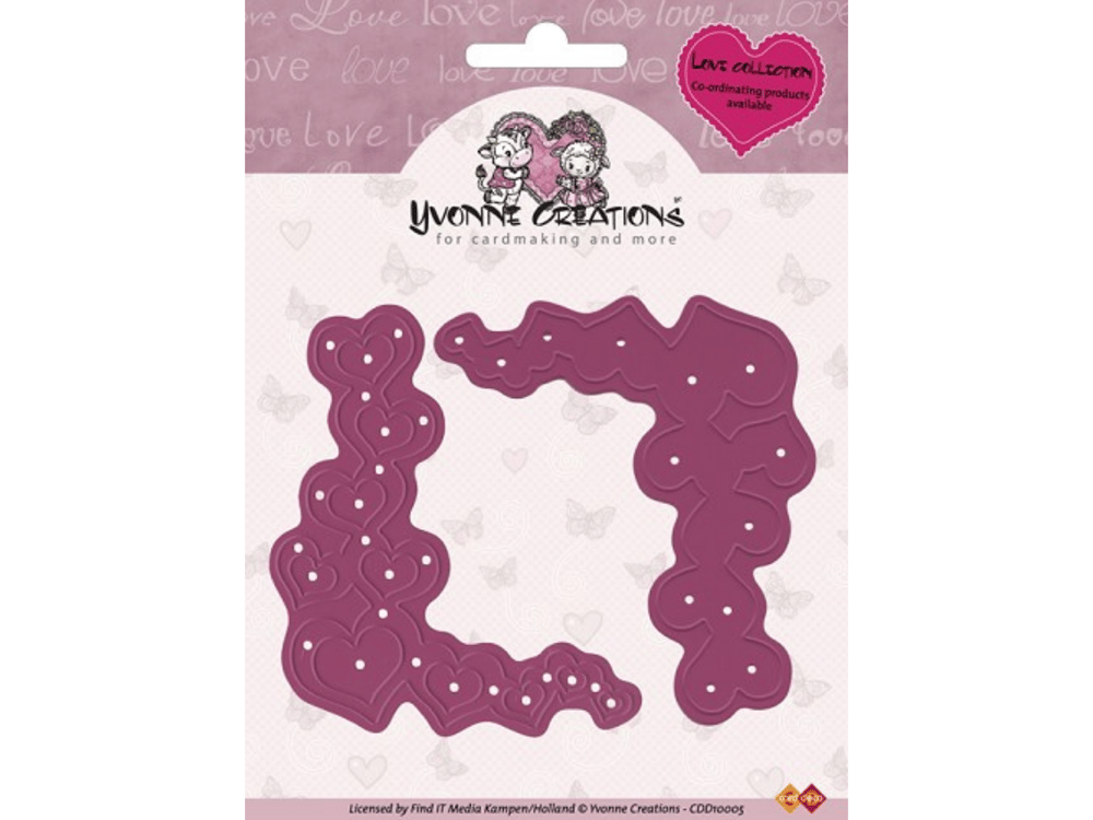 Yvonne Creations-Love Die: Heart Corners. Pretty and innovative cutting dies to help you create beautiful cards, scrapbook pages and other handcrafted projects! Can be used with most die cutting machines. This 7-1/2x5-5/8 inch package contains two metal dies.